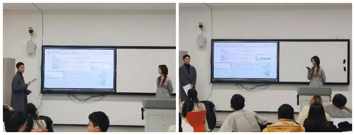 活动伊始,第一环节的有关人工智能的“Brain Teaser”吸引大家关注。问题刚一抛出,同学们争相抢答,教室瞬间升级为“AI竞技场”。这场趣味挑战不仅是一场语言实战,更让智能时代的伦理与创想悄悄在每个人心里发芽。