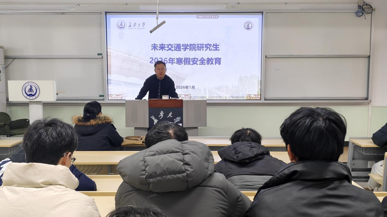 刘志兴围绕寒假期间交通安全、实验室安全和宿舍安全等方面进行了重点强调。他指出,春节临近,人员流动频繁,同学们在离校途中要自觉遵守交通法规,确保出行安全。针对寒假期间留校开展科研工作的学生,要严格遵守实验室安全管理制度及留校学生日常管理办法,防范各类安全隐患。此外,他对校区搬迁事宜进行了具体说明。